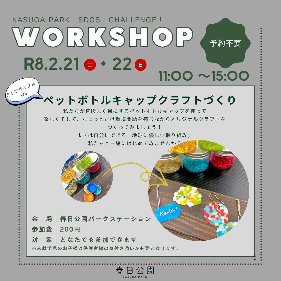 先月に引き続き今月も「ペットボトルキャップクラフトづくり」アップサイクルワークショップを開催いたします。ぜひご参加ください。
