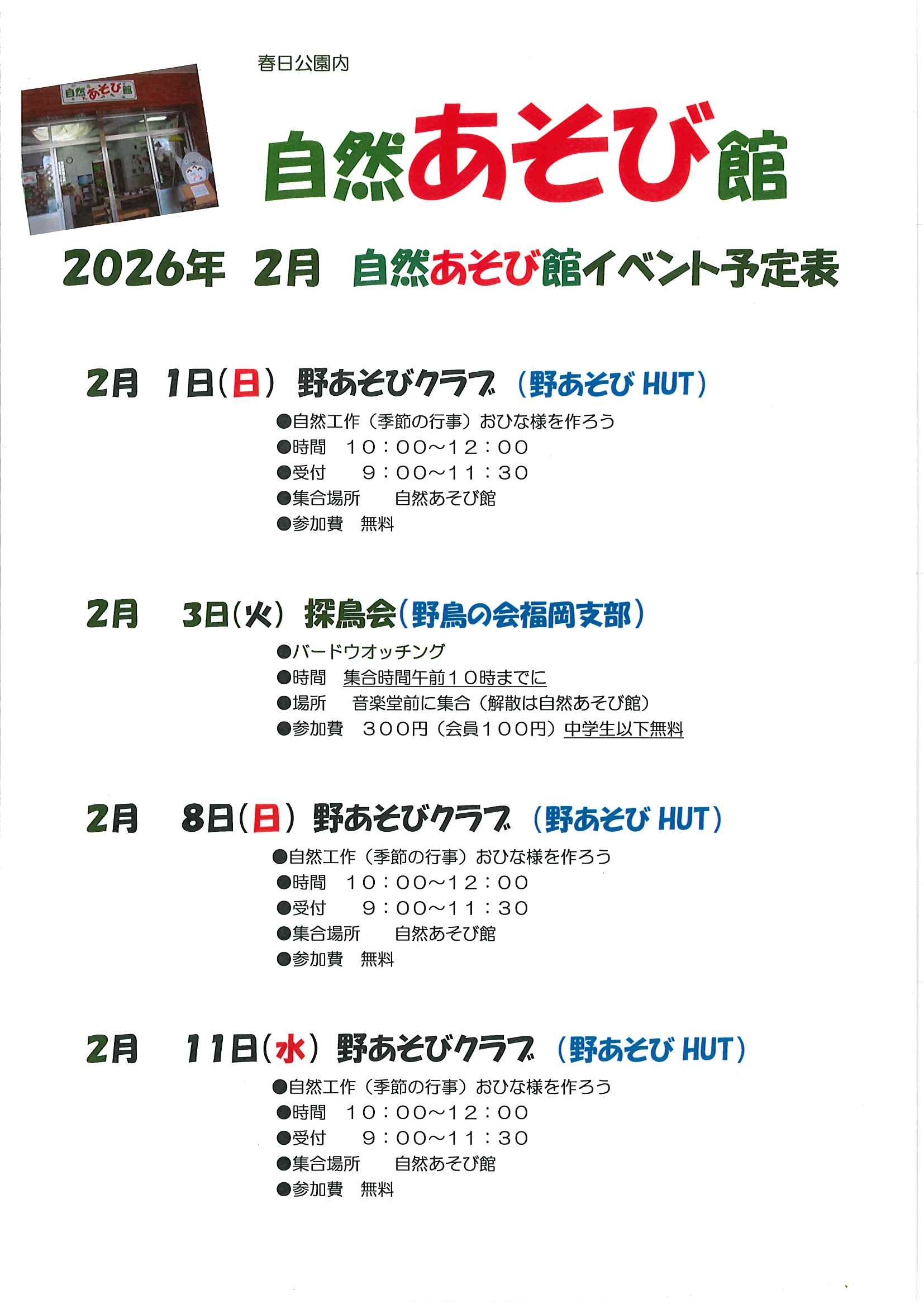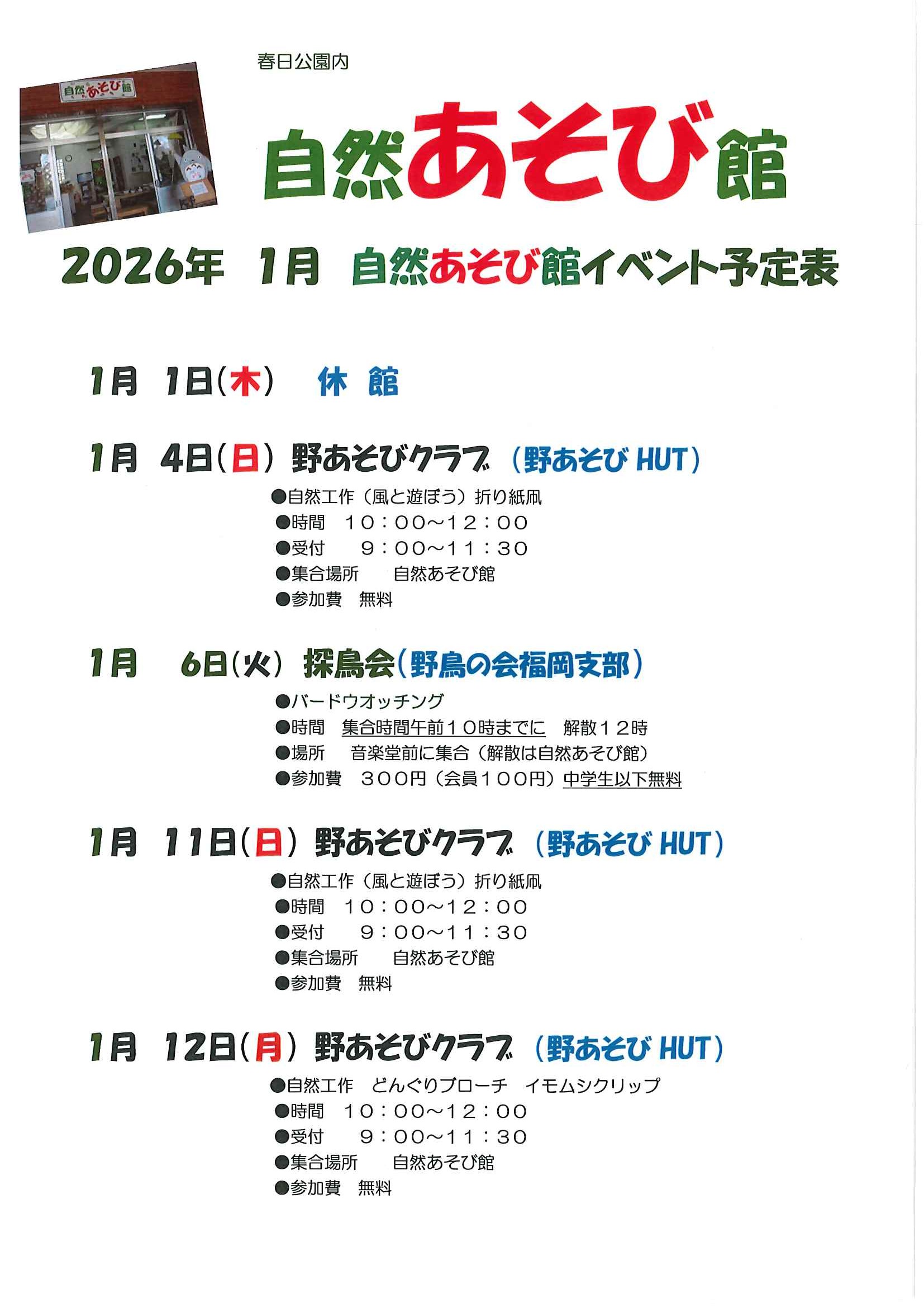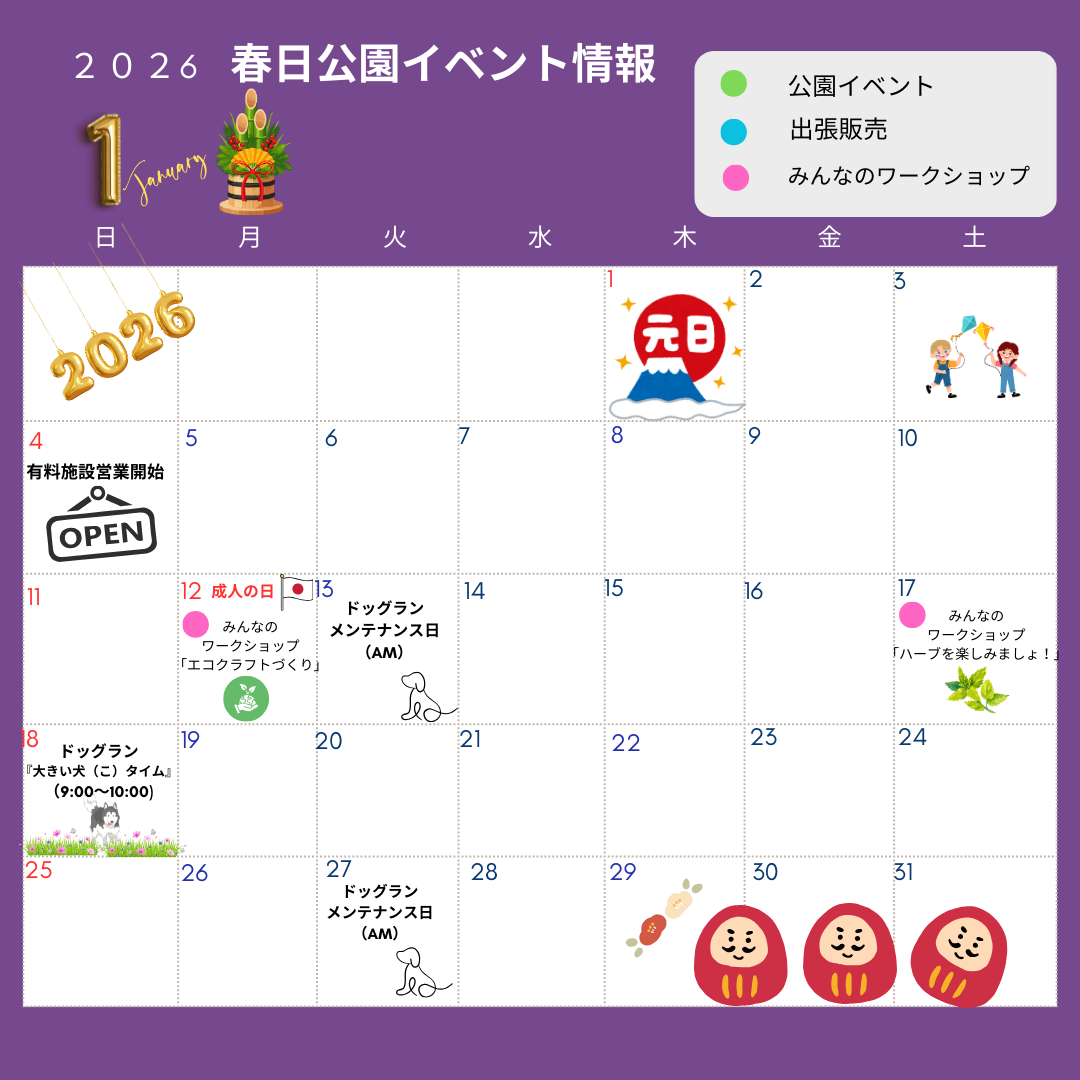 1月の春日公園イベント情報です。