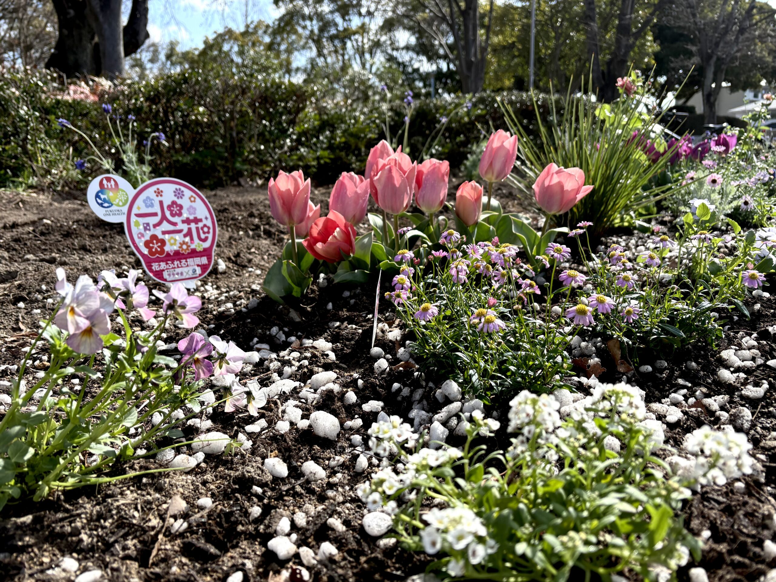 今回はカスケード花壇に花苗の植付を行いました。 春日公園の玄関口となり来園者を出迎える花壇。みなさまに楽しんでもらえると嬉しいです。