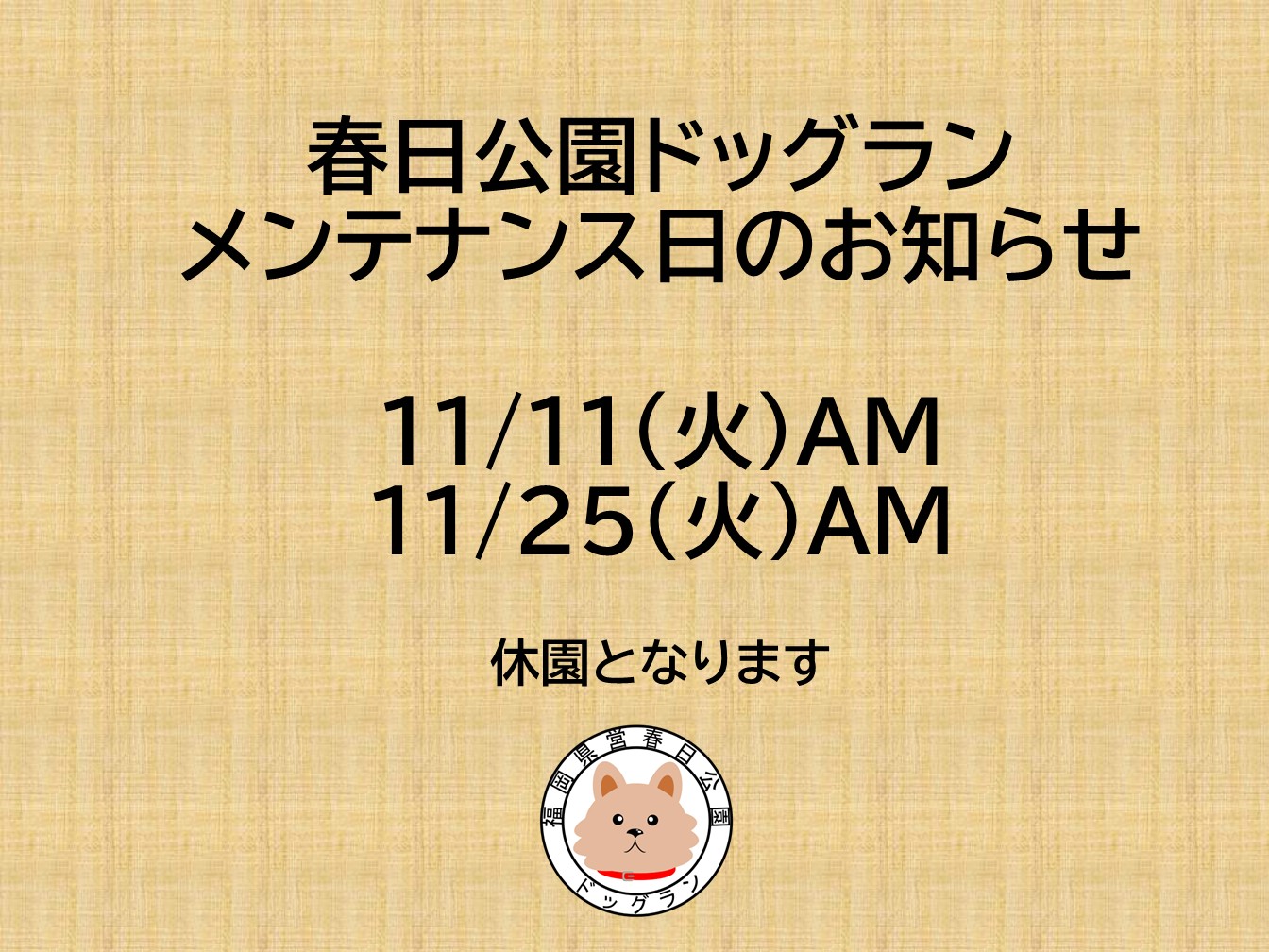 春日公園ドッグラン メンテナンス日のお知らせです。