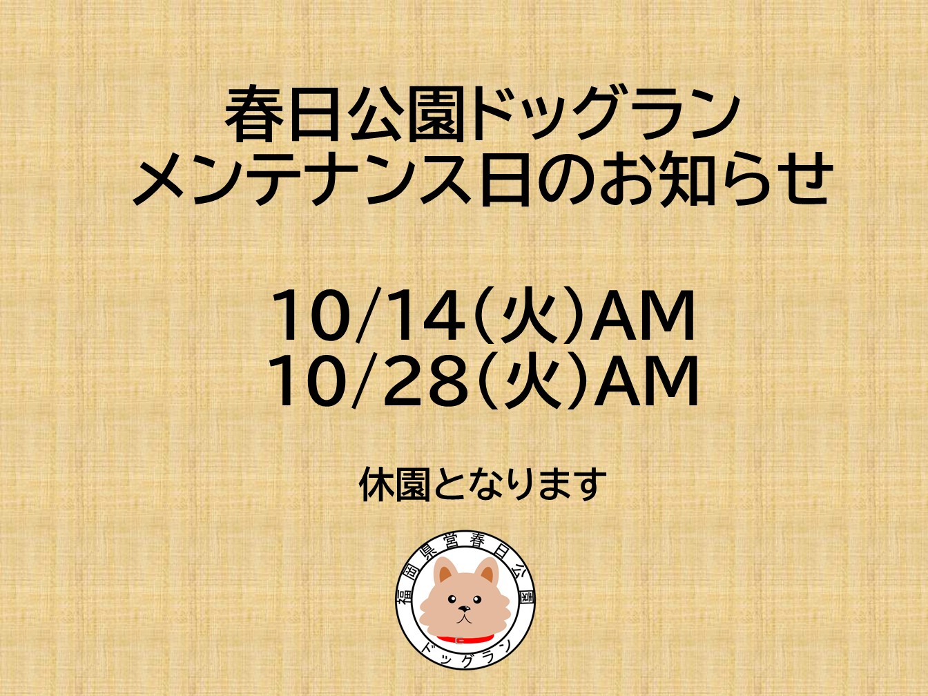 春日公園ドッグラン メンテナンス日のお知らせです。